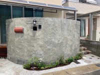 新しくお庭の工事が完工しました!丸いウッドデッキをアーチ状の壁面でぐるりと囲み、モルタル造形で仕上げ。経年の風合いを感じるような質感づくりと塗装を職人さんに奮闘してもらいました。丸いウッドデッキ。...