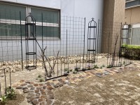 院内の空きスペースを活用してローズガーデンを新設しました。BeforeAfter既にお手持ちであったバラを移植し新たにツルバラが加わりました。オベリスクを使った壁面をつくり立体感のある景色にしていきます。手前...